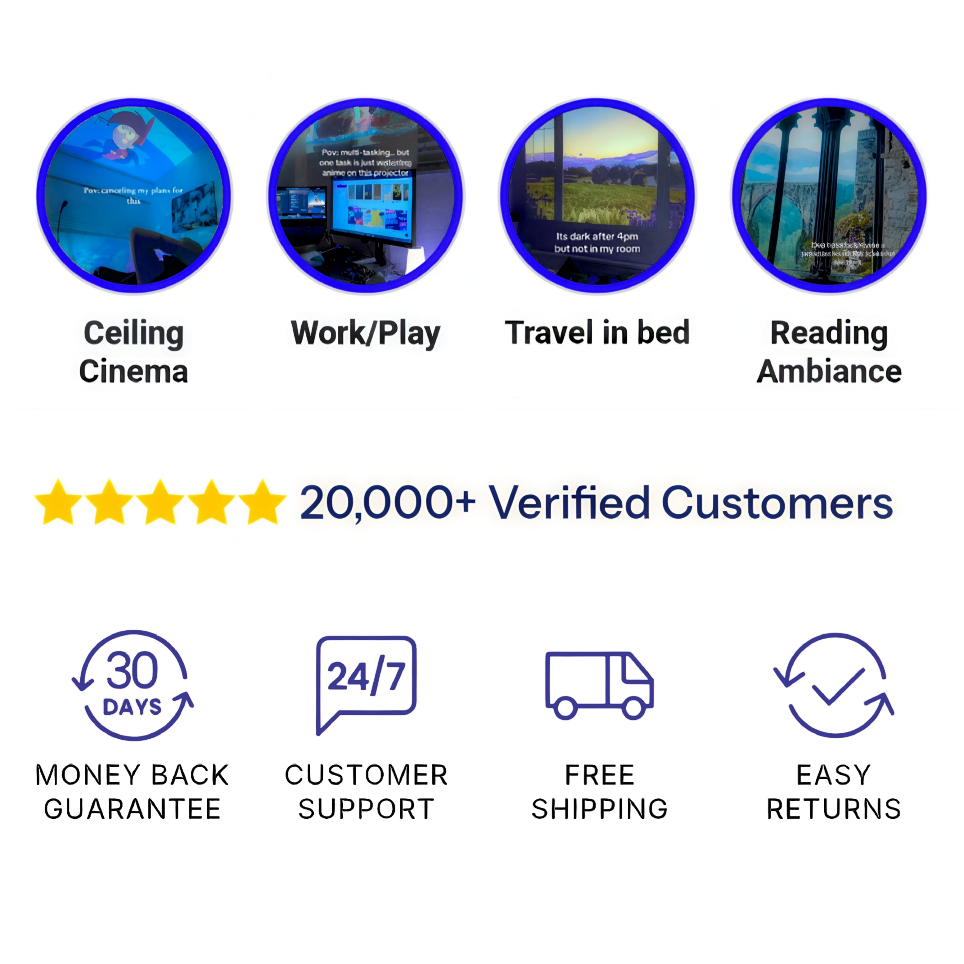 With DREAMIO Mini Projector You Can Easily Connect And Control With Your Own Phone. Connect With Your Bluetooth- Watch Your Favorite Movies Play Your Favorite Games And Turn Your Bedroom Into Something Magical.